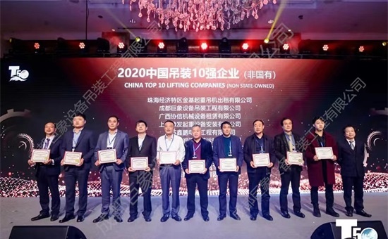 被中國吊裝協會授予成都巨象吊裝公司(民營)全國十強